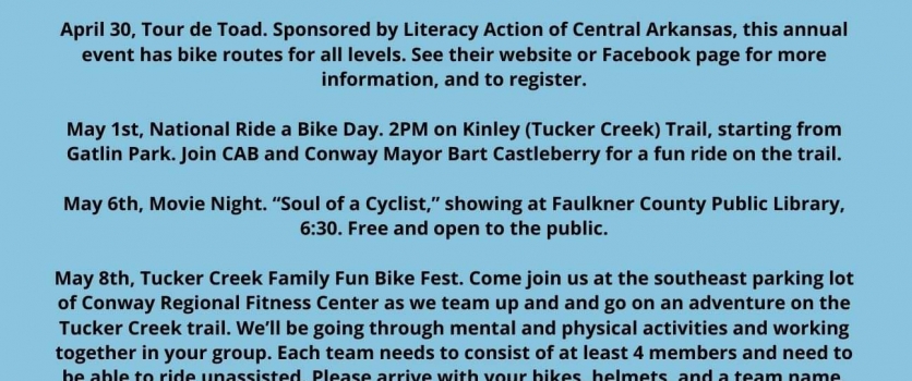 Did you know you could support CAB when you make your Amazon purchases? Just visit https://smile.amazon.com and designate Conway Advocates for Bicycling as the organization you’d like to support! It costs you nothing, and Amazon donates a portion of your purchase to CAB. Just remember to visit smile.amazon.com every time you make an Amazon purchase. Thanks for your support!